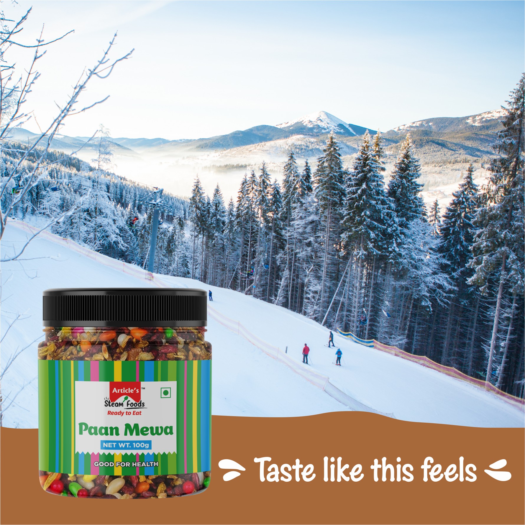 Indulge in the rich, aromatic taste of Pan Mewa, a unique blend of premium dry fruits, nuts, and refreshing paan flavors. This delightful combination offers a sweet, nutty, and mildly spiced taste, making it a perfect post-meal refreshment. Enjoy the authentic essence of paan infused with the goodness of mewa, all in a delicious bite!
